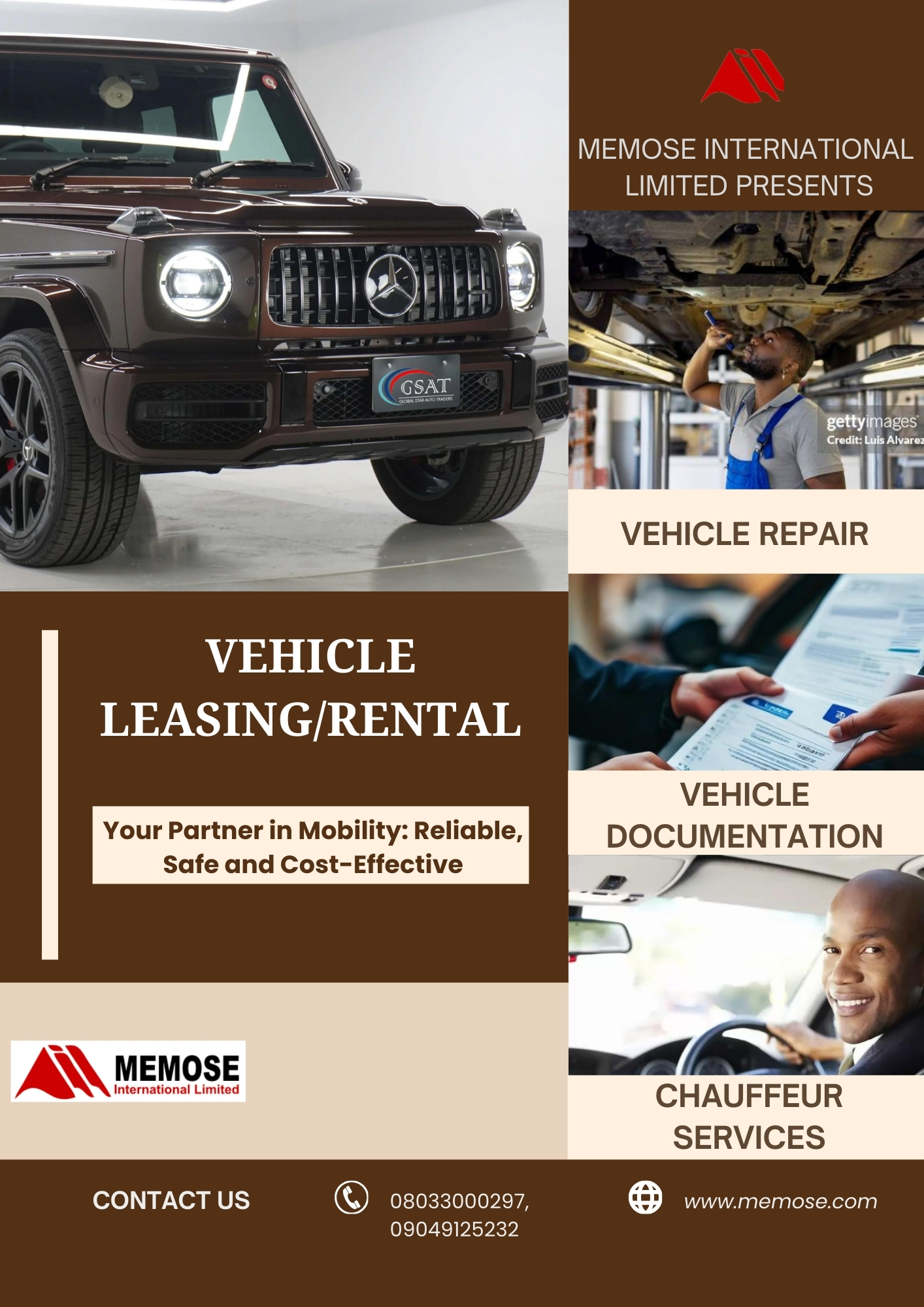 MEMOSE INTERNATIONAL LIMITED is the most complete vehicle rental solution in Nigeria with different kind of posh, luxury and executive pool of cars for your comfort. Safety and security is a key factor in all our services.